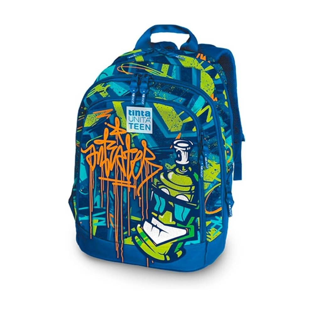 Zaino Cross della nuova linea scuola Teen “Street” by TintaUnita realizzato in poliestere ad alta resistenza. Ogni zaino è dotato del nuovo sistema di attacco Crooooss System un sistema innovativo della nuova linea scuola di TintaUnita che permette di agganciarlo al carrello Crooooss System. 3 zip principali per poter suddividere tutto il materiale scolastico una tasca lateriale con chiusura a zip una tasca laterale a rete per ombrello o borraccia tirazip gommati e personalizzati logo gommato frontale. Spallacci regolabili ed imbottiti con banda catarifrangente e fondo termoformato. Capacità di 28 Lt. Dimensioni: 39x23x44 cm