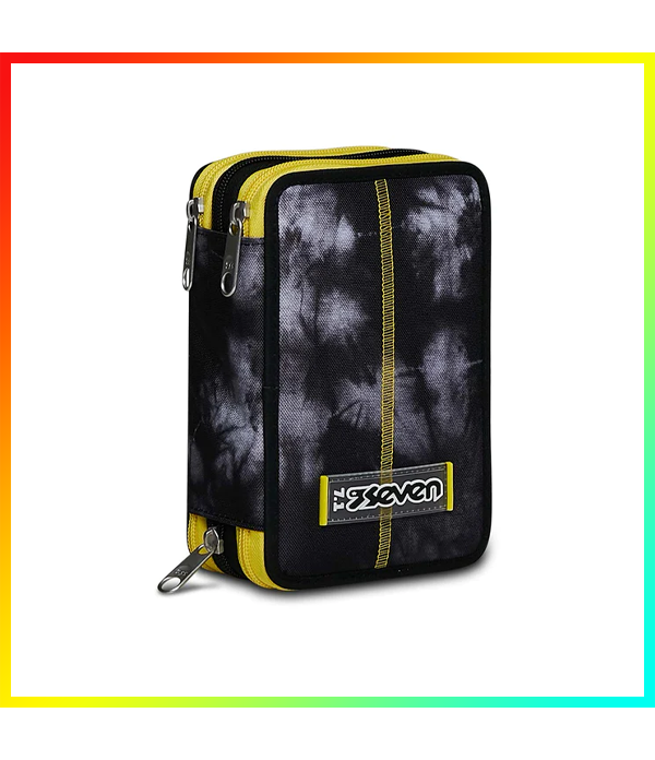 Contenuto : 18 Pastelli a colori mina 4.0 SEVEN Colour Code 18 Pennarelli lavabili SEVEN Colour Code 1 Penna cancellabile blu Colour Code 1 Penna cancellabile rossa Colour Code 1 Matitone fluo bicolor giallo e arancio Colour Code 1 Matita grafite Colour Code 1 Gomma Colour Code 1 Temperino barilotto a 2 fori 1 Colla stick Colour Code 1 Righello trasparente 1 Goniometro 1 Forbice in metallo con maniglia in plastica. Tasche : Triplo scomparto
