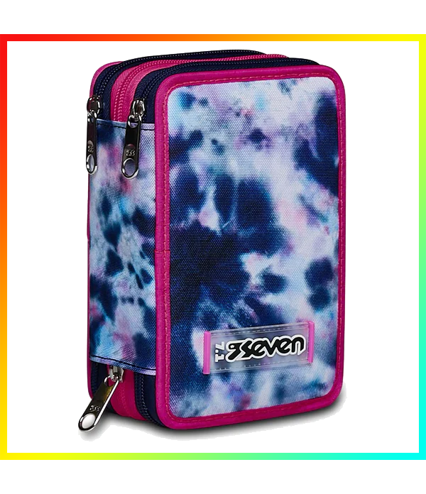 ASTUCCIO scuola 3 ZIP seven TRIPLO SCOMPARTO pencil case CLOUDY SHAPES tre piani BLU completo Astuccio triplo scomparto 3 ZIP - CLOUDY SHAPES - BLU completo di Seven. L’astuccio Seven 3 zip ha tre scomparti in cui troverai tutto il materiale necessario per la tua giornata di scuola. A te non resta altro che abbinarlo a uno zaino o a un trolley Seven. L'astuccio 3 zip Seven è l’accessorio che non può mancare nel tuo zaino… Perché dentro trovi tutto il necessario per la scuola: penne matite colorate pennarelli colla e tanto altro ancora! Triplo scomparto e massima qualità dei contenuti! Contenuto (46 pezzi): 18 Pastelli a colori mina 4.0 Seven Colour Code 18 Pennarelli lavabili Seven Colour Code 1 Penna cancellabile blu 1 Penna cancellabile rossa 1 Matitone fluo bicolor giallo e arancio Colour Code 1 Matita grafite Colour Code 1 Gomma Colour Code 1 Temperino barilotto a 2 fori 1 Colla stick Colour Code 1 Righello trasparente 1 Goniometro trasparente 1 Forbice in metallo con maniglia in plastica. Dimensioni: circa 125 x 20 x 7 cm.