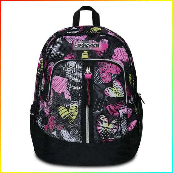 Affronta la tua giornata piena di impegni con il nuovo zaino Seven Advanced. Con il suo capiente doppio scomparto puoi portare con te tutto ciò di cui hai bisogno: libri quaderni tablet o PC borraccia e cambio per l”allenamento.Tutto è organizzato al meglio grazie all”apposito scomparto interno e alla tasca laterale. E non dimenticare la tasca frontale con organizer e paillettes iridescenti per il tuo telefono gli auricolari e l”agenda.Spostarsi da un posto all”altro non è mai stato così comodo. Gli spallacci e lo schienale sono confortevoli e il fondo integrato mantiene il carico sempre ben bilanciato. Con lo zaino Seven Advanced sei sempre pronto per affrontare la giornata. Schienale: Nuovo design con preformature nei punti di contatto e fondo integrato. Capacità: 30 lt Dimensioni: 31 x 43 x 24 cm Altre caratteristiche: Zaino doppio scomparto con apertura dello scomparto principale facilitata. Paillettes iridescenti su tasca frontale e nuova etichetta in gomma personalizzata con logo SEVEN. Tasche: Tasca interna porta PC/tablet tasche laterali: una chiusa con zip ed una in rete porta borraccia tasca frontale con organizer secret pocket interna. Spallacci: Imbottiti e rivestiti in tessuto e rete con nuova sagomatura anatomica. Tessuto: Poliestere