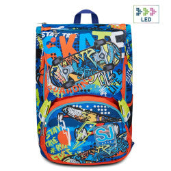 Zaino scuola SJ estensibile Big. Zaino realizzato in robusto poliestere schienale in Ergosystem preformato con fondo integrato spallacci imbottiti e traspiranti. Tasche frontali per piccoli oggetti. La zip di espansione laterale consente di aumentare o diminuire la capacità a seconda delle esigenze. Le nuove fibbie a sgancio rapido sono semplici ed immediate. Sistema a led sulla patta frontale attivabile con tasto ON/OFF e ricaricabile tramite USB Marca Sj Gang Larghezza (cm): 27 Altezza (cm): 41 Profondità (cm): 16/22 Capacità (l) 26/31 Materiale Poliestere